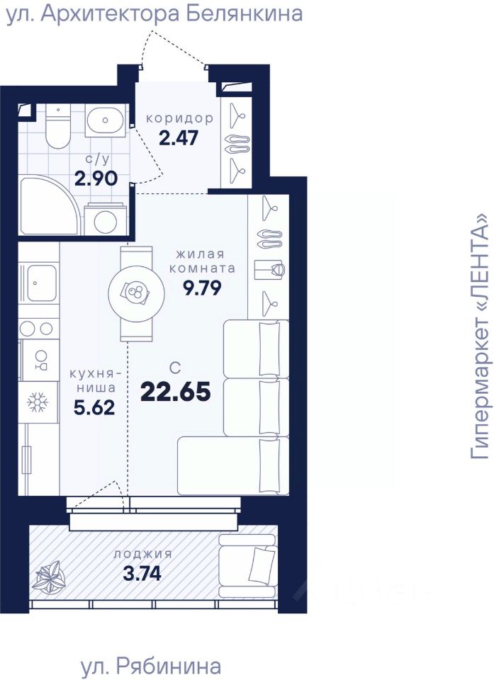 22,65 м²