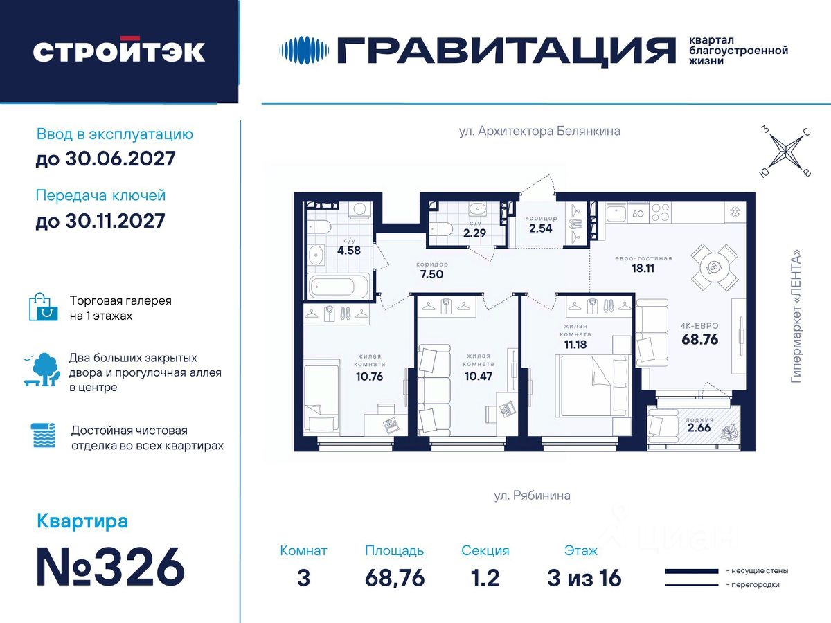 Гравитация — уютный и обособленный, и в то же время открытый и просторный квартал. Всё рядом: супермаркеты и парки, кино и рестораны, школы и сады. В нескольких шагах набережная реки Патрушихи.