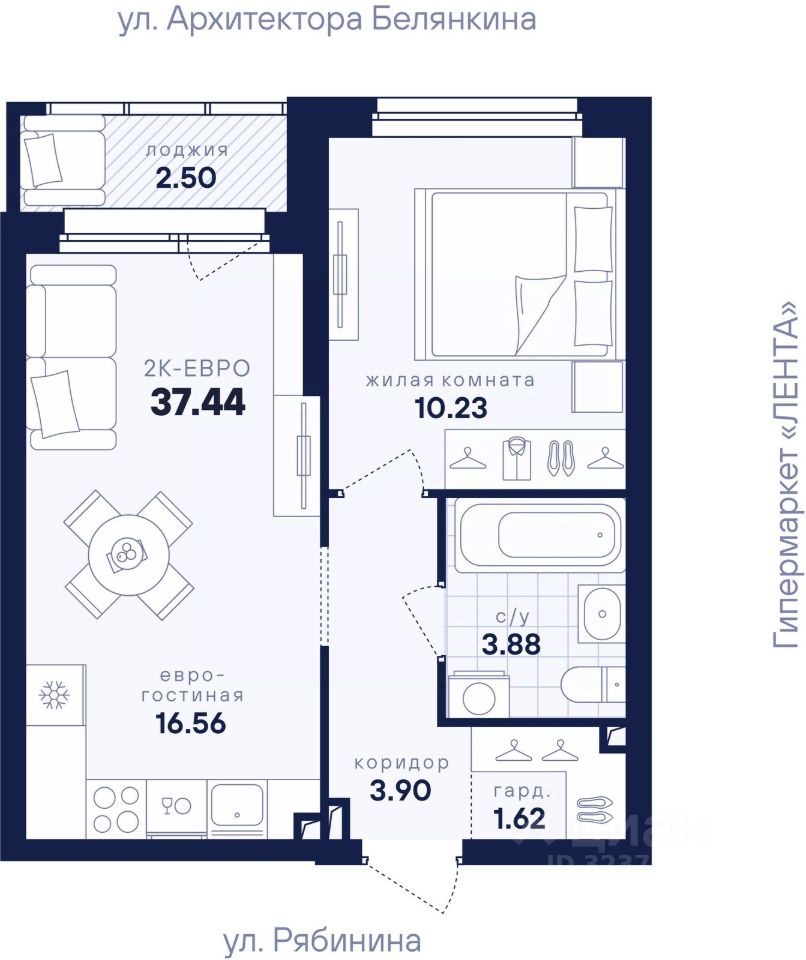 Общая площадь37,44 м²