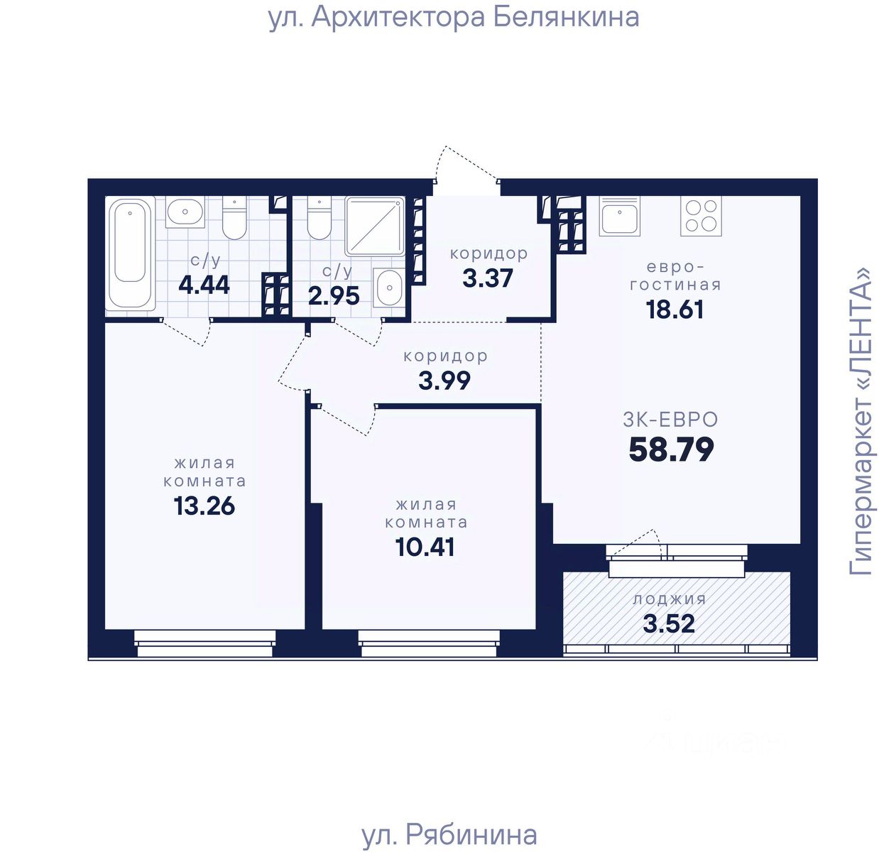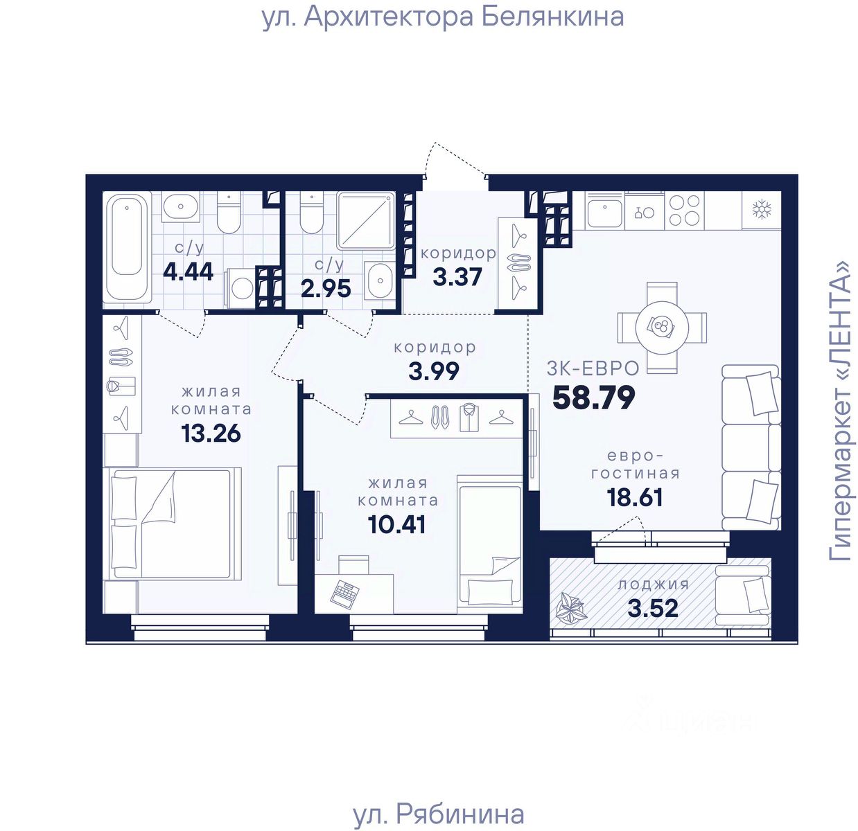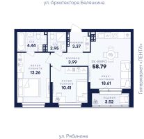 Общая площадь58,79 м²