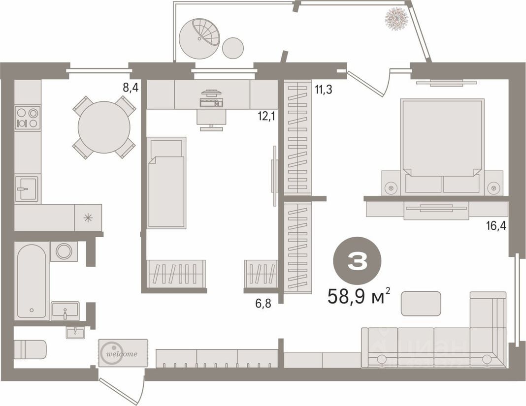 В продаже трехкомнатная квартира площадью 58.9 кв.м. расположенная по адресу: г. Екатеринбург, ул. Соликамская, дом 3, расположенная на 1 этаже, двенадцатитиэтажного, кирпичного дома.