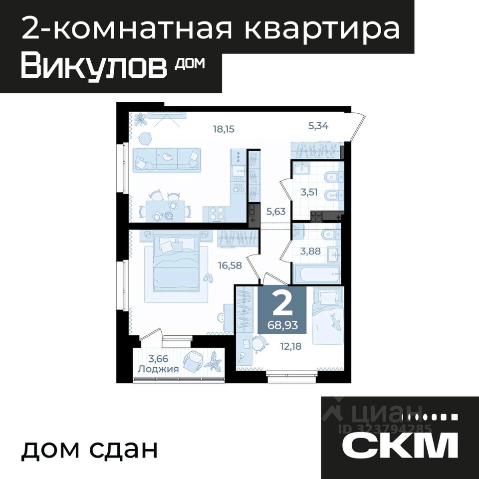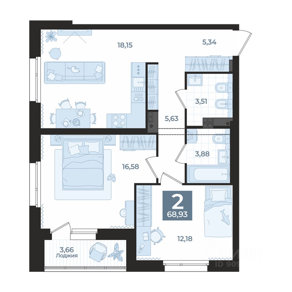 Общая площадь68,93 м²