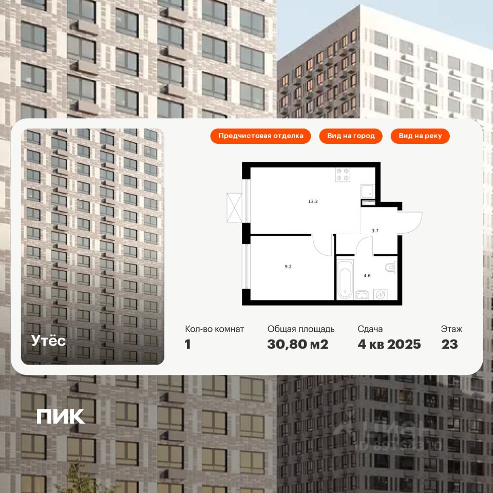 Продаётся 1-комн. квартира площадью 30,8 кв.м на 23 этаже 29 этажного дома (Корпус 3, Секция 1) проекта ПИК Утёс. Светлый просторный подъезд на уровне земли, функциональная планировка, большие окна, предчистовая отделка.