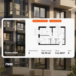 Продаётся 2-комн. квартира площадью 49,7 кв.м на 8 этаже 24 этажного дома (Корпус 5, Секция 1) проекта ПИК Исеть парк. Светлый просторный подъезд на уровне земли, функциональная планировка, большие окна, предчистовая отделка.