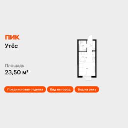 Продаётся квартира-студия площадью 23,5 кв.м на 22 этаже 29 этажного дома (Корпус 6, Секция 1) проекта ПИК Утёс. Светлый просторный подъезд на уровне земли, функциональная планировка, большие окна, предчистовая отделка.