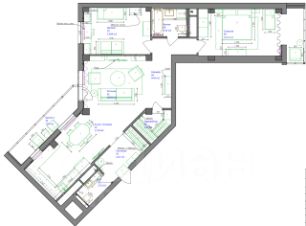 В квартире выделены большая кухня-гостиная, детская, спальня, вместительная гардеробная, два санузла.
