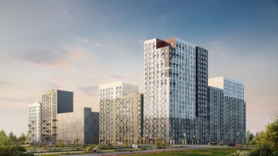 Разноуровневые террасы, французские балконы и панорамное угловое остекление — особенность проекта. Архитектурная подсветка акцентно выделяет квартал в локации.