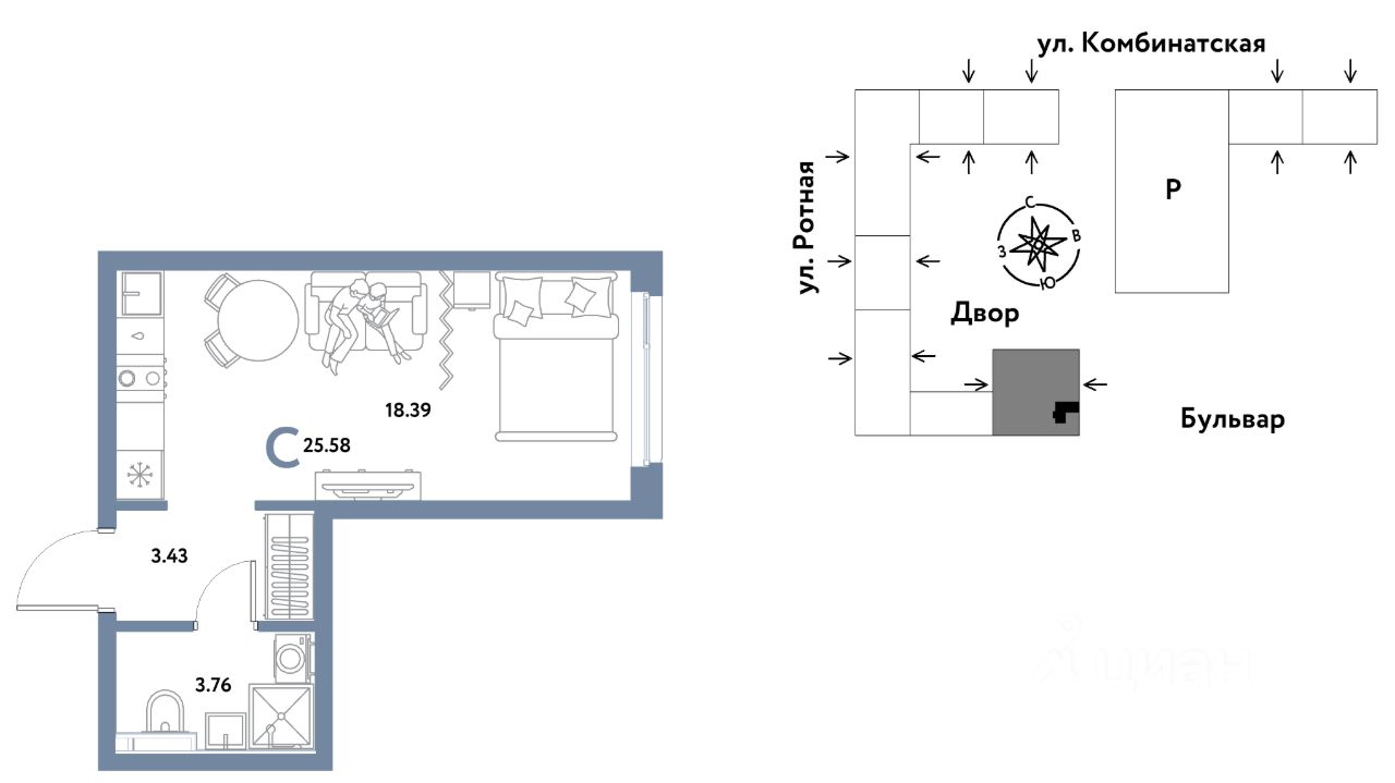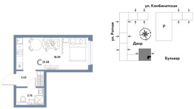 0комнатная квартира площадью 25,58кв. м. на 11 этаже жилого комплекса "Уральский сад".