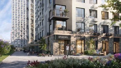 Разноуровневые террасы, французские балконы и панорамное угловое остекление — особенность проекта. Архитектурная подсветка акцентно выделяет квартал в локации.
