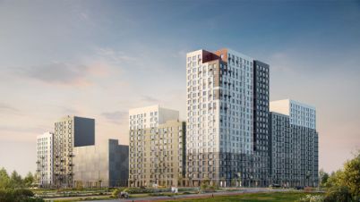 Разноуровневые террасы, французские балконы и панорамное угловое остекление — особенность проекта. Архитектурная подсветка акцентно выделяет квартал в локации.
