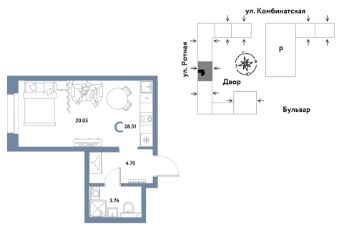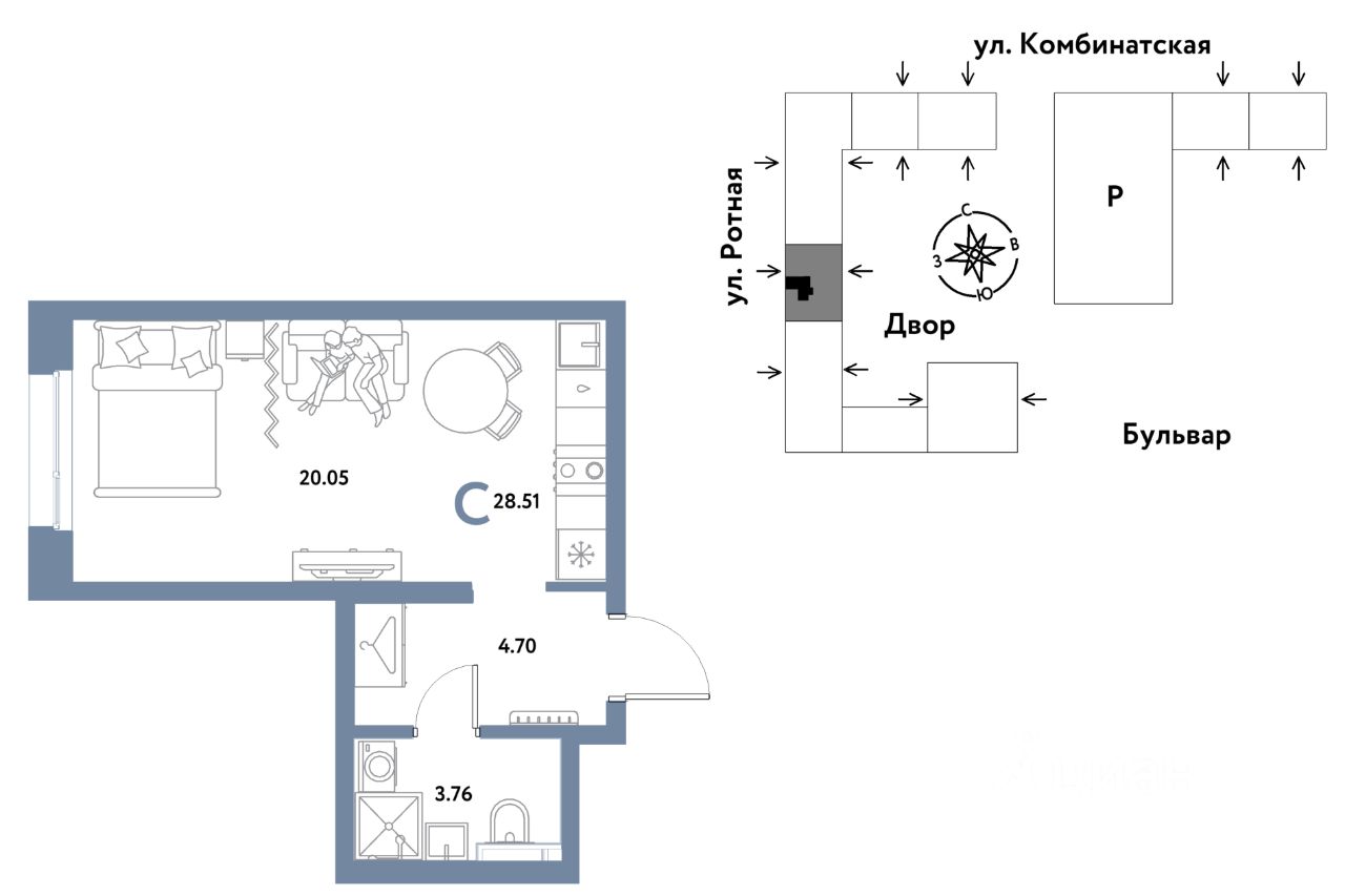 0комнатная квартира площадью 28,51кв. м. на 3 этаже жилого комплекса "Уральский сад".