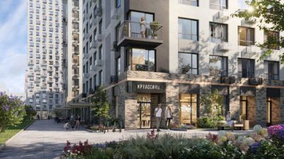 Разноуровневые террасы, французские балконы и панорамное угловое остекление — особенность проекта. Архитектурная подсветка акцентно выделяет квартал в локации.