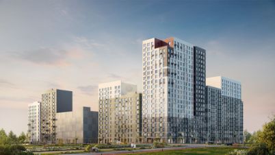 Разноуровневые террасы, французские балконы и панорамное угловое остекление — особенность проекта. Архитектурная подсветка акцентно выделяет квартал в локации.