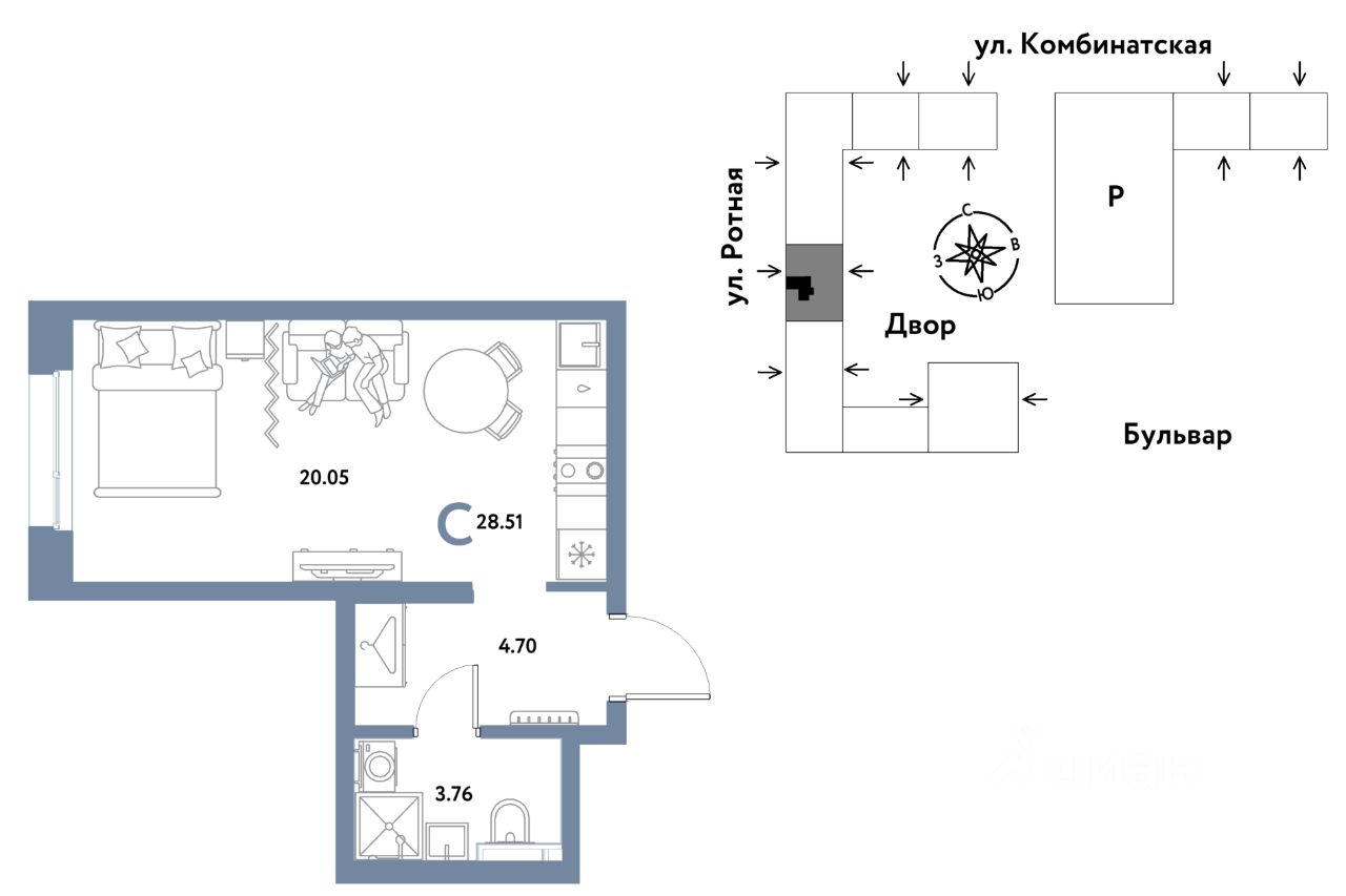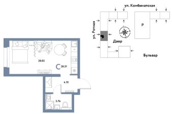 0комнатная квартира площадью 28,51кв. м. на 9 этаже жилого комплекса "Уральский сад".