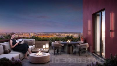 Разноуровневые террасы, французские балконы и панорамное угловое остекление — особенность проекта. Архитектурная подсветка акцентно выделяет квартал в локации.