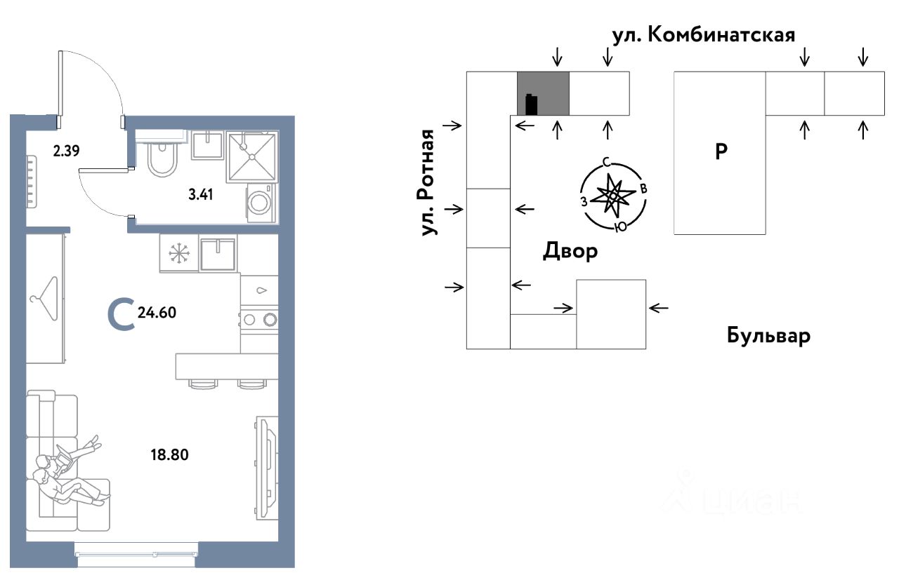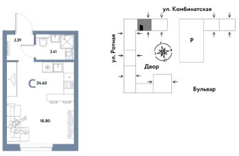 0комнатная квартира площадью 24,6кв. м. на 3 этаже жилого комплекса "Уральский сад".