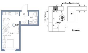 0комнатная квартира площадью 24,89кв. м. на 4 этаже жилого комплекса "Уральский сад".