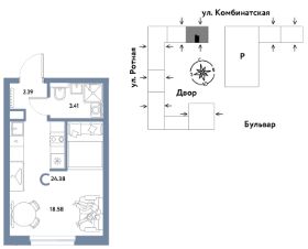 0комнатная квартира площадью 24,38кв. м. на 7 этаже жилого комплекса "Уральский сад".