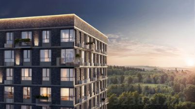 Разноуровневые террасы, французские балконы и панорамное угловое остекление — особенность проекта. Архитектурная подсветка акцентно выделяет квартал в локации.