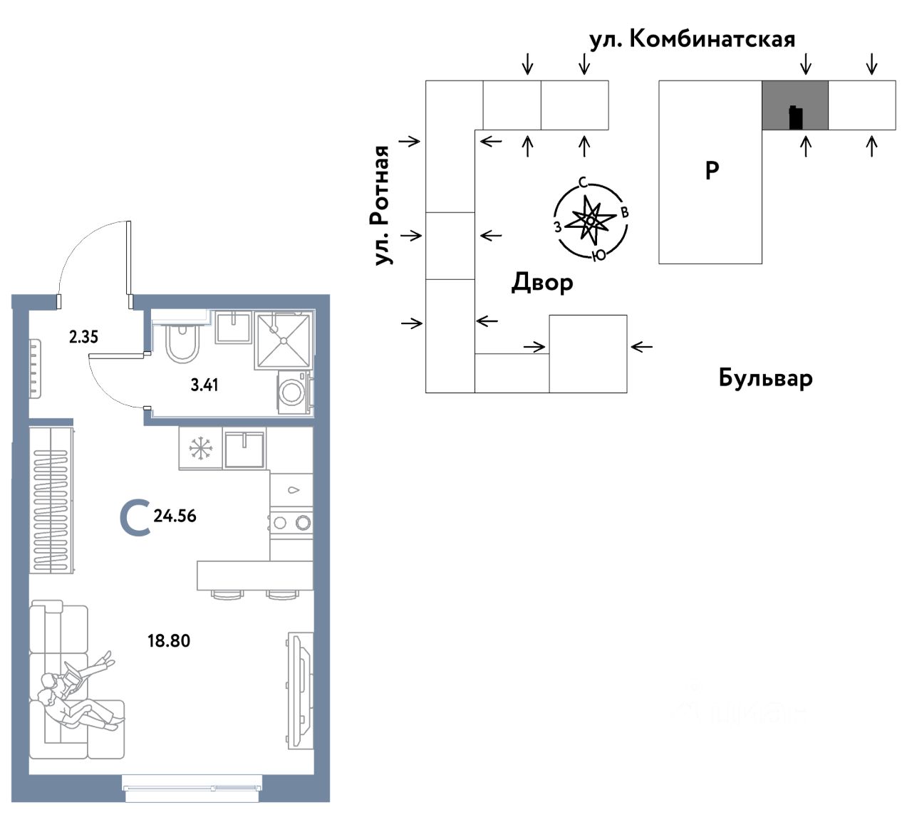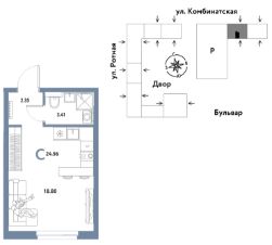0комнатная квартира площадью 24,56кв. м. на 10 этаже жилого комплекса "Уральский сад".