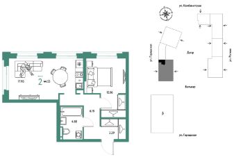 2комнатная квартира площадью 44,53кв. м. на 5 этаже жилого комплекса "Уральский сад".