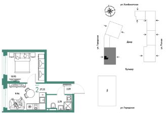2комнатная квартира площадью 27,25кв. м. на 8 этаже жилого комплекса "Уральский сад".
