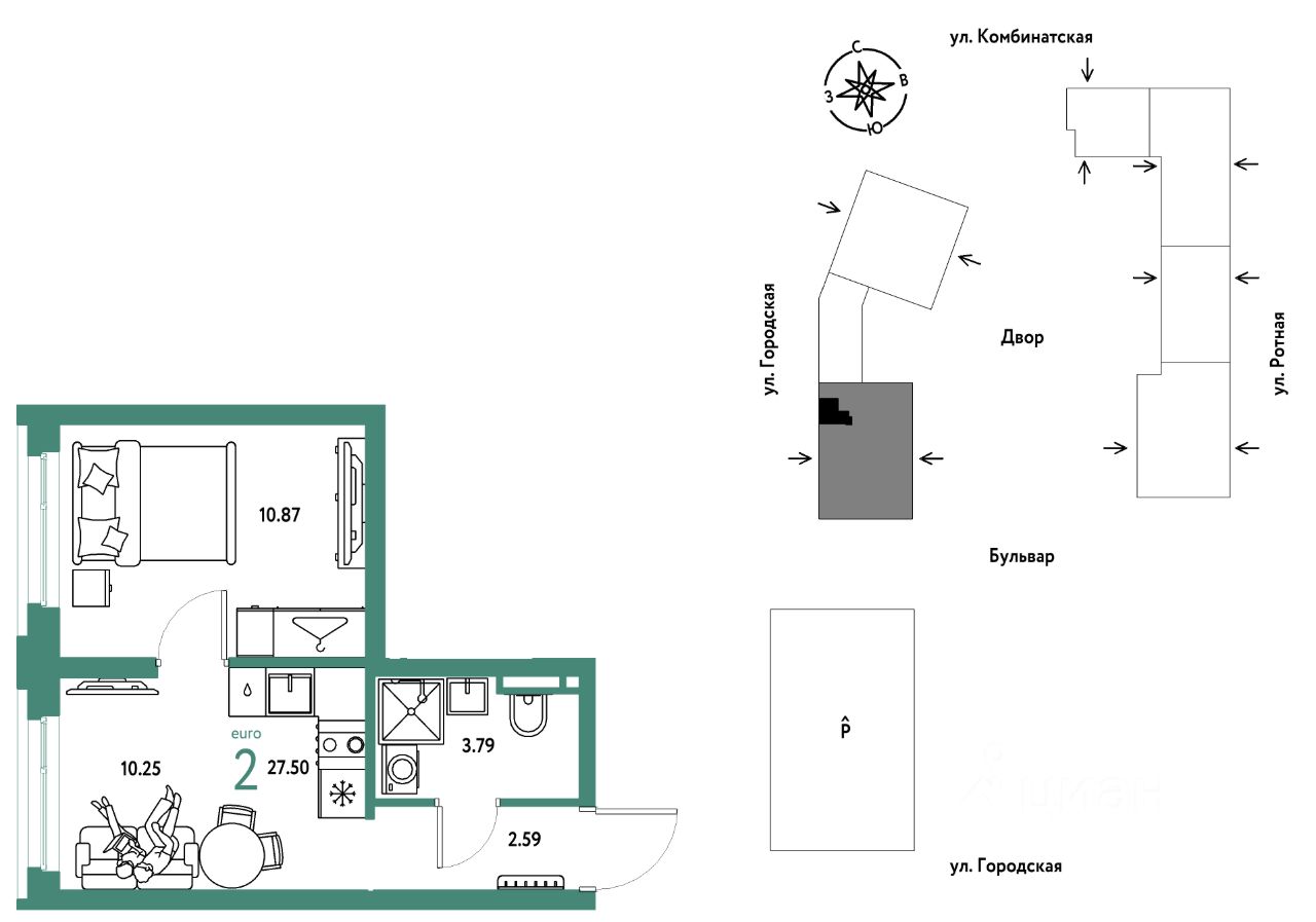 2комнатная квартира площадью 27,5кв. м. на 8 этаже жилого комплекса "Уральский сад".