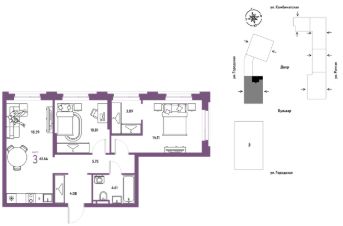 3комнатная квартира площадью 61,64кв. м. на 9 этаже жилого комплекса "Уральский сад".