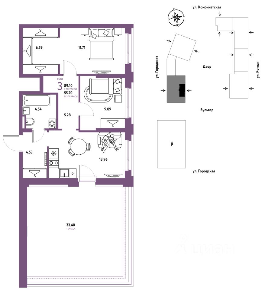 3комнатная квартира площадью 89,1кв. м. на 10 этаже жилого комплекса "Уральский сад".