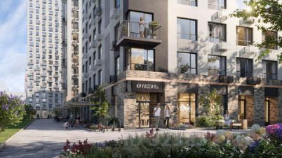 Разноуровневые террасы, французские балконы и панорамное угловое остекление — особенность проекта. Архитектурная подсветка акцентно выделяет квартал в локации.