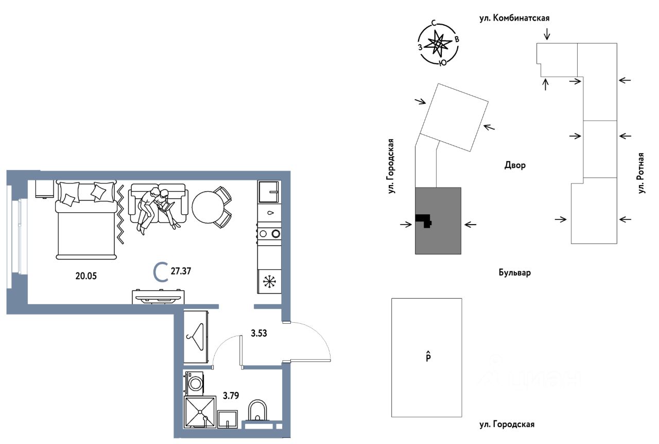 1комнатная квартира площадью 27,37кв. м. на 10 этаже жилого комплекса "Уральский сад".