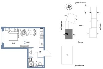 1комнатная квартира площадью 27,37кв. м. на 11 этаже жилого комплекса "Уральский сад".