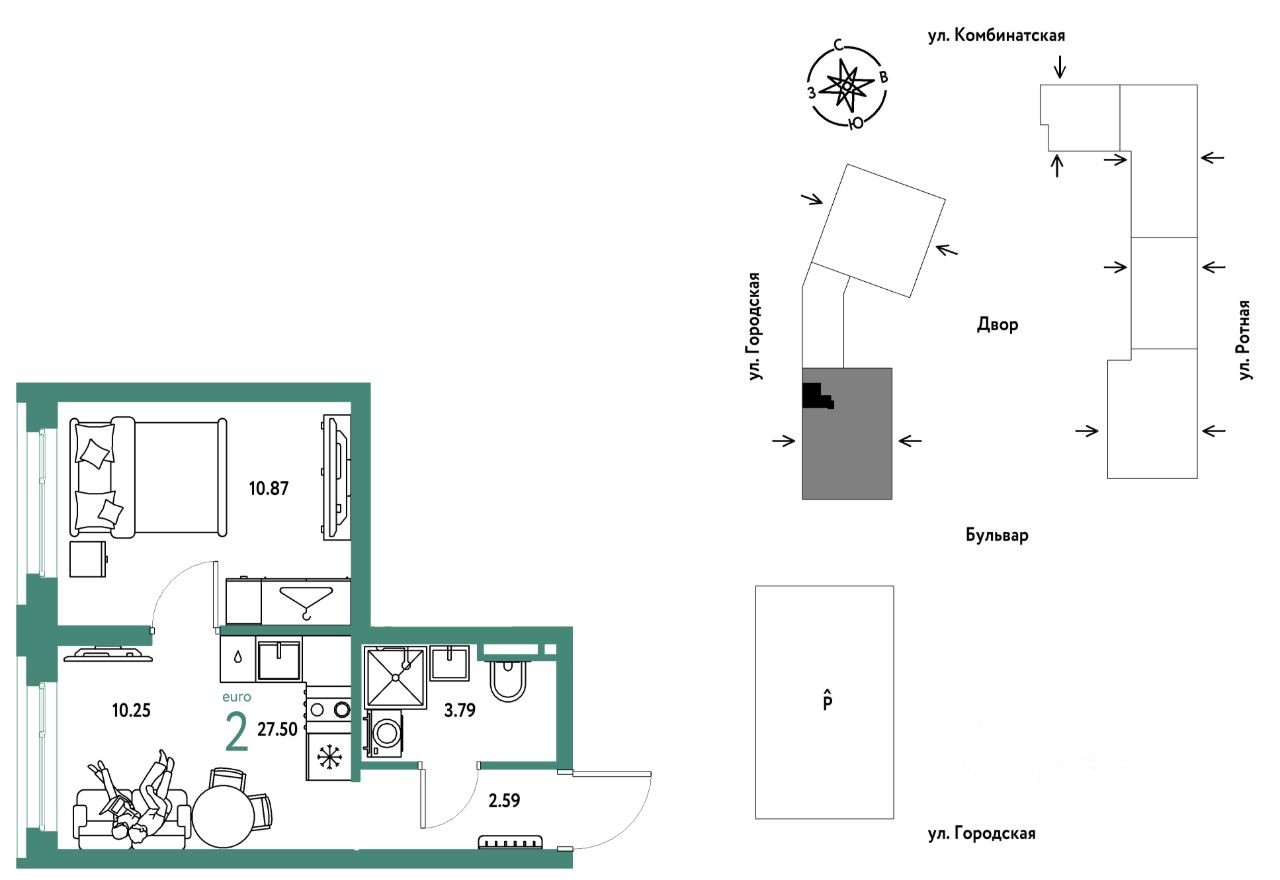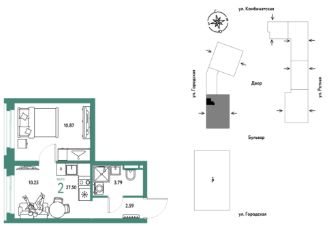 2комнатная квартира площадью 27,5кв. м. на 11 этаже жилого комплекса "Уральский сад".