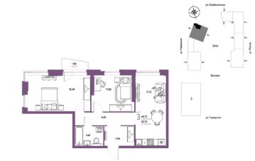 3комнатная квартира площадью 65,72кв. м. на 3 этаже жилого комплекса "Уральский сад".