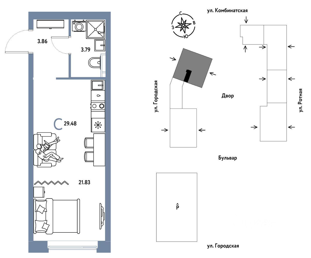 1комнатная квартира площадью 29,48кв. м. на 7 этаже жилого комплекса "Уральский сад".