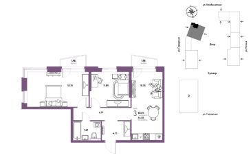 3комнатная квартира площадью 68,54кв. м. на 9 этаже жилого комплекса "Уральский сад".