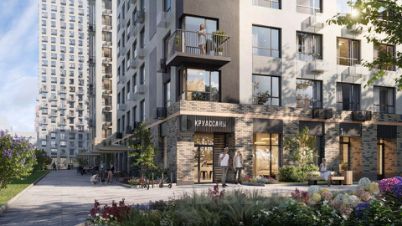 Разноуровневые террасы, французские балконы и панорамное угловое остекление — особенность проекта. Архитектурная подсветка акцентно выделяет квартал в локации.