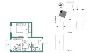 2комнатная квартира площадью 32,22кв. м. на 12 этаже жилого комплекса "Уральский сад".