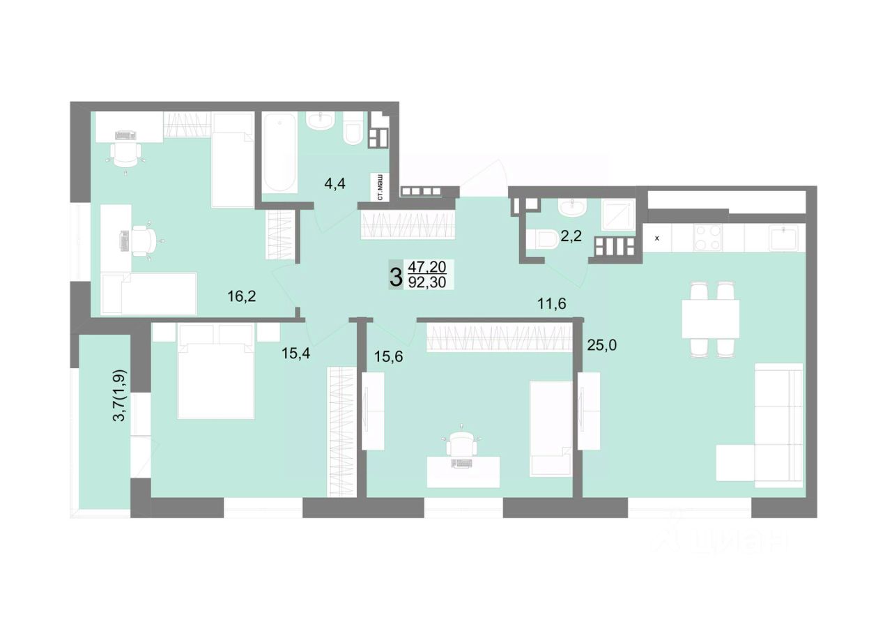 Продаётся 3-комнатная квартира в строящемся доме (Дом 1 секции 1-5), срок сдачи: II-кв. 2026, общей площадью 92.3 кв.м., на 9 этаже. Дом комфорт-класса на песчаном берегу Верх-Исетского пруда.