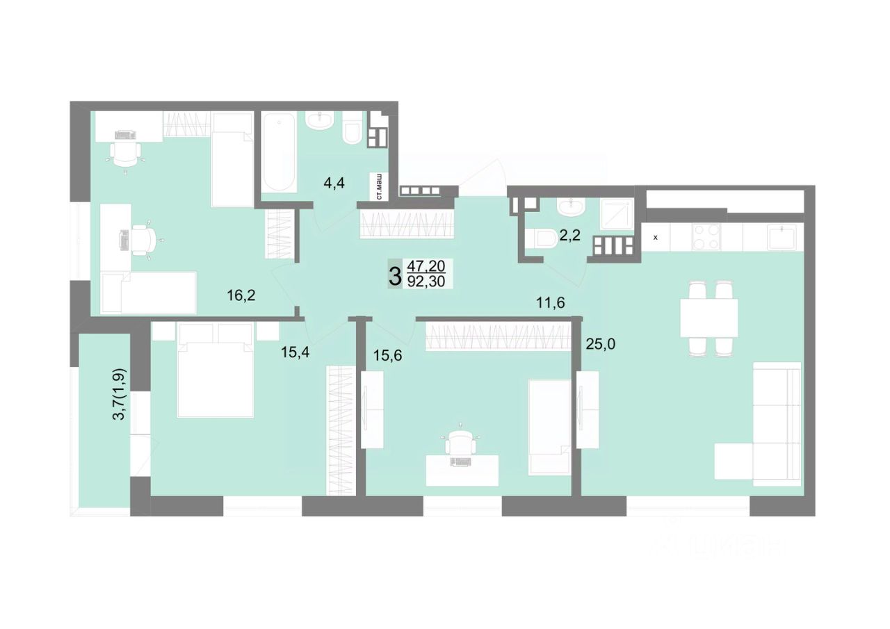 Продаётся 3-комнатная квартира в строящемся доме (Дом 1 секции 1-5), срок сдачи: II-кв. 2026, общей площадью 92.3 кв.м., на 8 этаже. Дом комфорт-класса на песчаном берегу Верх-Исетского пруда.