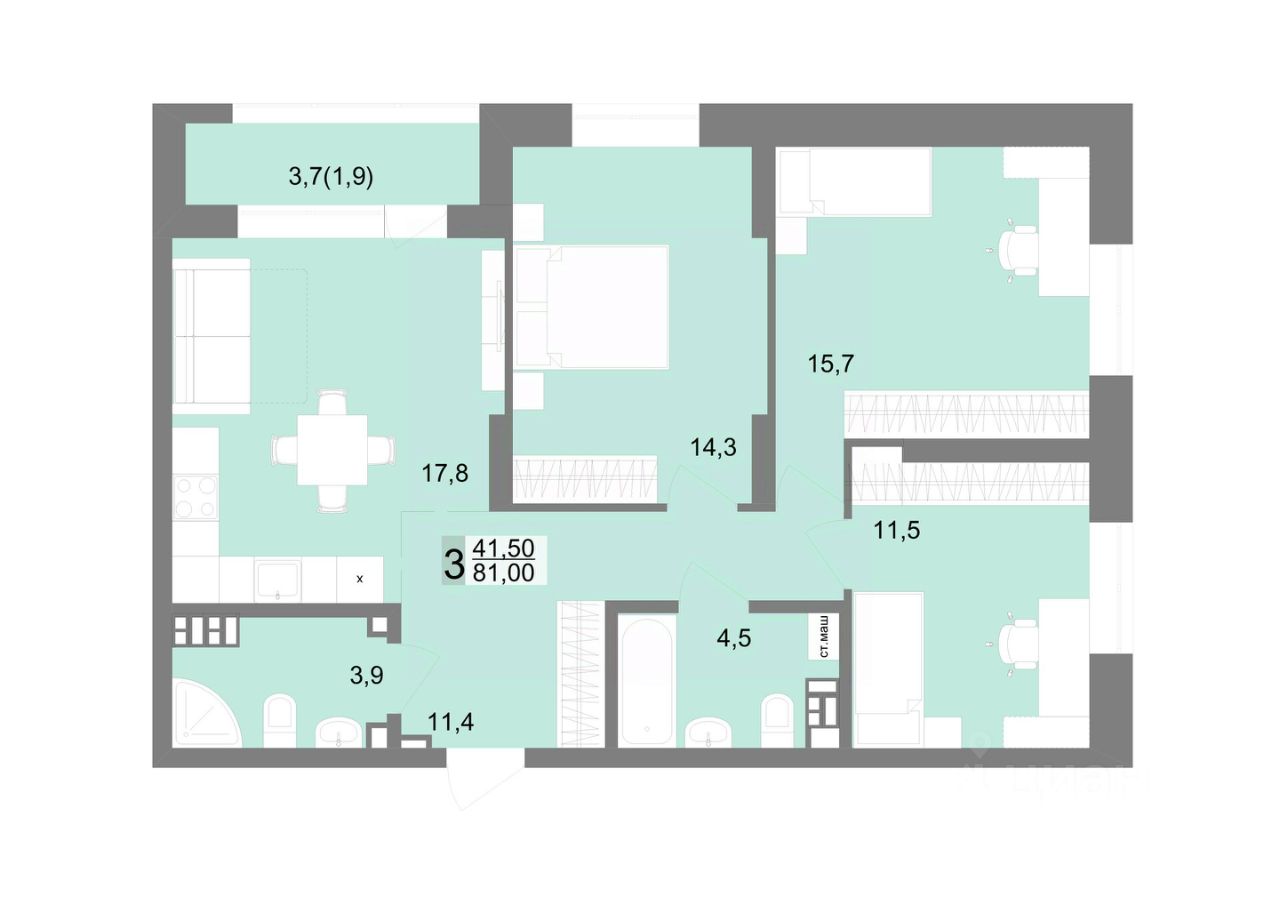 Продаётся 3-комнатная квартира в строящемся доме (Дом 1 секции 1-5), срок сдачи: II-кв. 2026, общей площадью 83.2 кв.м., на 9 этаже. Дом комфорт-класса на песчаном берегу Верх-Исетского пруда.