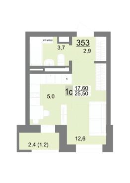 25,4 м²