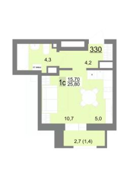 Продаётся студия в строящемся доме (Секция С1), срок сдачи: III-кв. 2026, общей площадью 25.6 кв.м., на 15 этаже. Многоэтажные жилые дома по ул. Металлургов от ГК "Астра". 1 очередь строительства