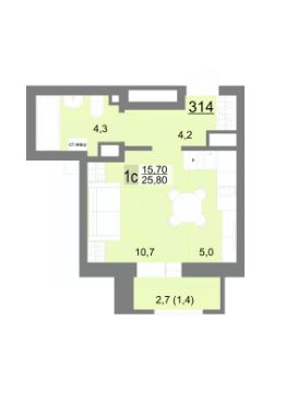 Продаётся студия в строящемся доме (Секция С1), срок сдачи: III-кв. 2026, общей площадью 25.6 кв.м., на 13 этаже. Многоэтажные жилые дома по ул. Металлургов от ГК "Астра". 1 очередь строительства