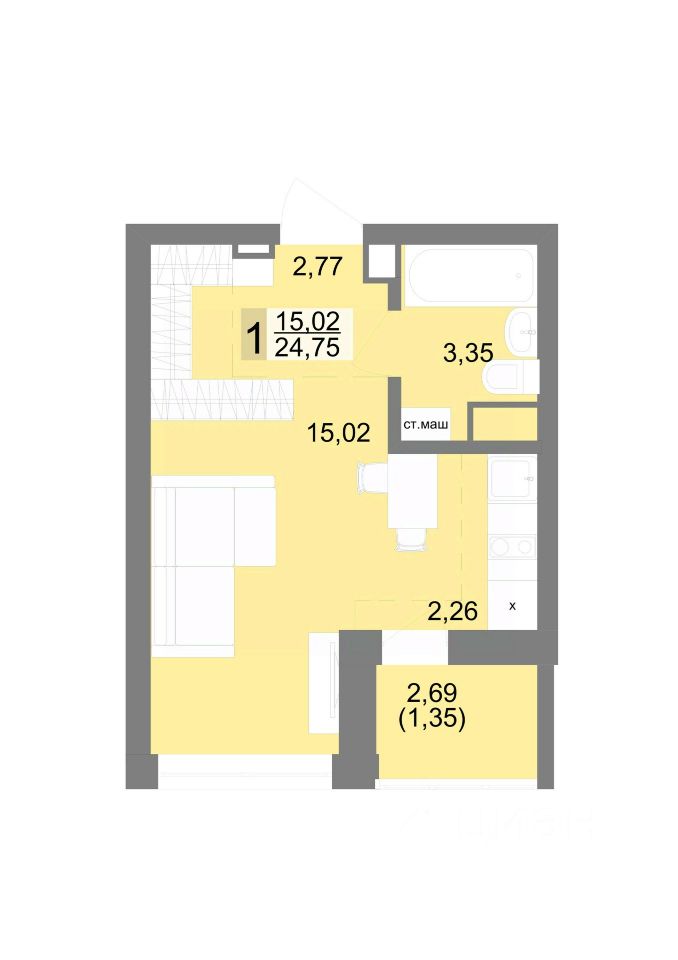 25,52 м²