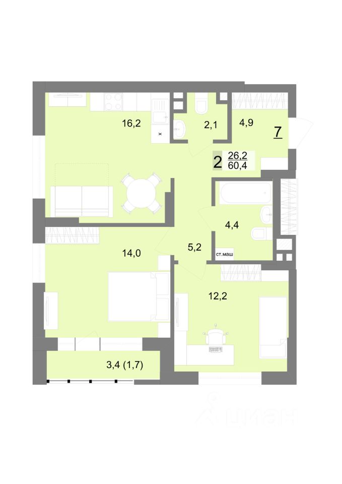 60,4 м²