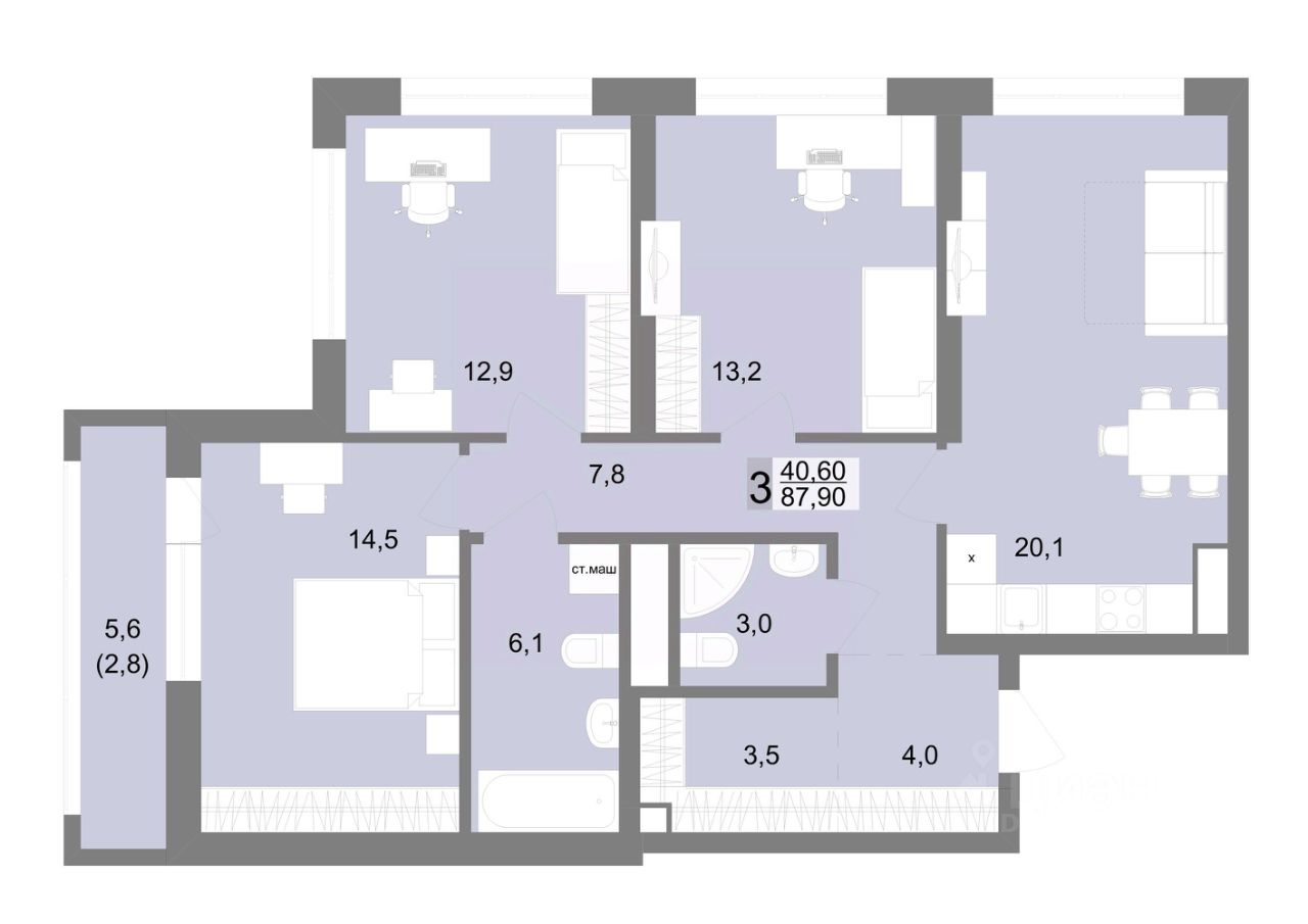 87,9 м²