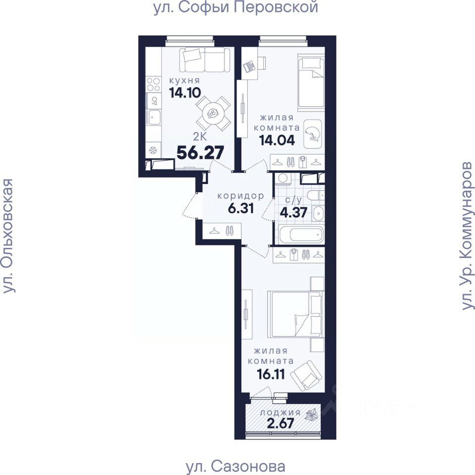 Общая площадь56,27 м²