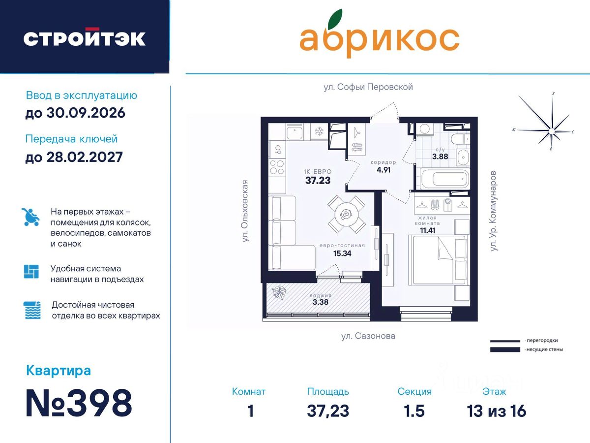 ЖК "Абрикос" ЖК "Абрикос", расположен в районе Новая Сортировка по адресу ул. Софьи Перовской, д. 106а. Познакомьтесь с "Абрикосом" поближе. Мы создали его таким, чтобы вы были довольны всем, а ваша жизнь в нём была как сам этот фрукт: свежей, сочной, яркой и солнечной. Район Тихий микрорайон Новая сортировка на Северо-западе Екатеринбурга. 20 минут пешком до парка "Таганская слобода" 15 минут на машине до кольцевой дороги, а до центра — полчаса даже по пробкам 10 минут на машине до ТЦ "Карнавал" 7 школ и 11 детсадов поблизости 6 продуктовых магазинов рядом Двор Во дворе хорошо должно быть всем: детям — площадки по возрасту, взрослым — прогулочные дорожки. Но это не всё. Вместительная парковка вокруг ЖК Концепция "Двор без машин", когда можно заехать только для разгрузки и погрузки Закрытая территория с пропускной системой Круглосуточное видеонаблюдение и освещение территории в ночное время Стритбольная площадка Подъезды Не подъезд, а парадная. Так говорят в Петербурге, но и в "Абрикосе" это слово приходит в голову. Просторные холлы с витражами и достойной отделкой. Доступ в подъезды на уровне земли — без барьеров Домофоны — в тёплых остеклённых тамбурах В каждом подъезде — грузопассажирский лифт Помещения для колясок и самокатов на 1 этаже Удобная навигация с номерами этажей и квартир Планировки Наш подход к проектированию называется "Разумные метры". Это значит не только исходить из площади, но и учитывать число жильцов и их потребности. Объединённые кухни-гостиные для простора и общения 3D-модели с вариантами обстановки Отказ от бесполезных "мёртвых" зон Отделка В ЖК "Абрикос" мы позаботились о чистовой отделке, чтобы ваш переезд прошёл быстро и не вызвал лишних хлопот. На полу в комнатах, прихожих и кухнях — прочный водостойкий ламинат, в санузлах — керамическая плитка, потолки — натяжные Межкомнатные двери и усиленная сейф-дверь на входе в квартиру В санузлах установлены раковины и унитазы, а во всей квартире — розетки и выключатели Радиаторы с терморегуляторами и горизонтальной разводкой, двухкамерные стеклопакеты с приточными клапанами вентиляции