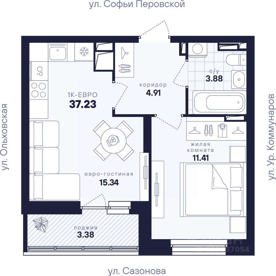 Общая площадь37,23 м²